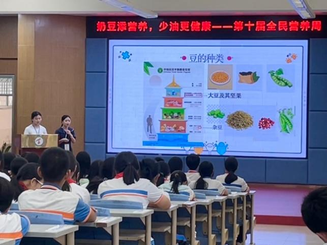 5月14日,广州医科大学公共卫生学院科普宣教团队教师带领30名学生志愿者到广东第二师范学院番禺附属初级中学,举办以“奶豆添营养,少油更健康”为主题的2024年全民营养周暨5·20中国学生营养日系列活动。