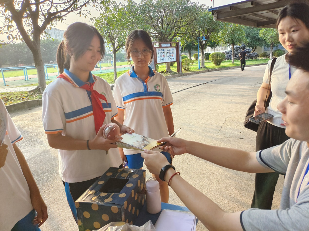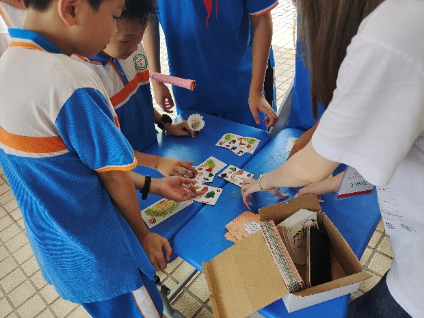 完成各项游戏后,同学们拿着游戏卡抽奖,志愿者同时派发今年的营养周宣教知识册。