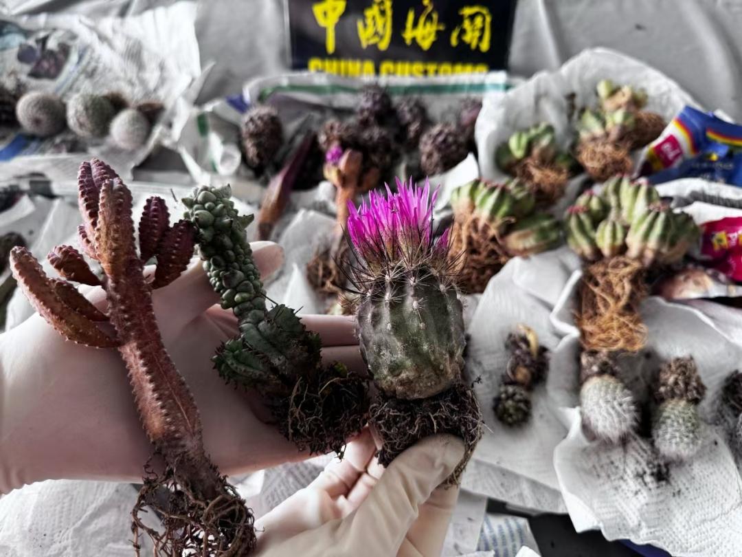 近日,九洲海关对一批国际邮件实施检查时,发现其中1个邮件存在异常。经进一步检查,邮件内实际为用报纸包裹的活体带土仙人掌,共计49件,疑似濒危物种,海关暂扣该邮件并采样送检。经拱北海关技术中心鉴定,该批仙人掌分别为乳突球属、松笠球属、极光球属等,均为《濒危野生动植物种国际贸易公约》(CITES)附录Ⅱ列名保护物种。目前,已按规定作进一步处置。