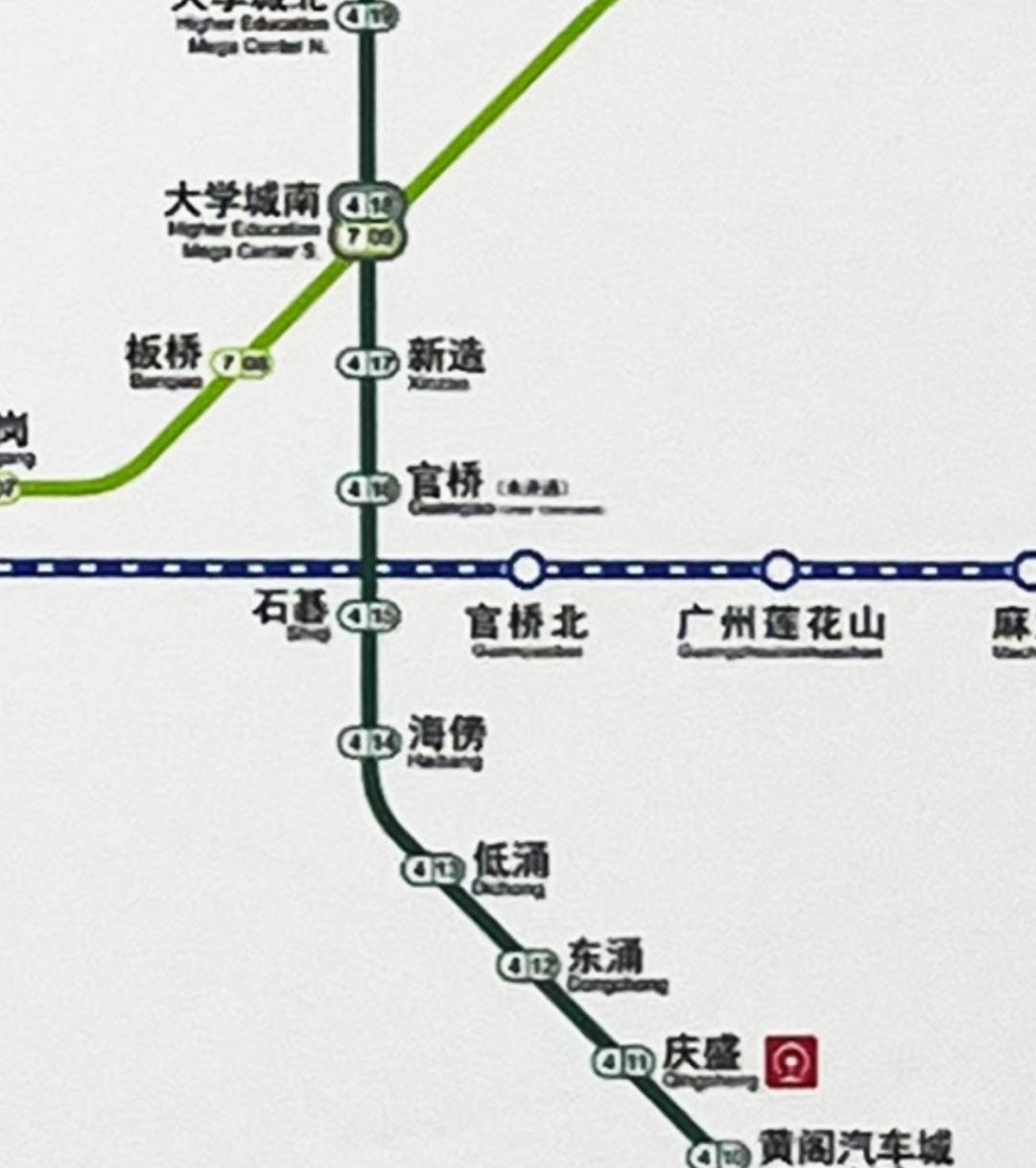 官桥站是地铁4号线的最后一座预留车站——另一座是换乘高铁的庆盛站,在高铁站通车6年后开通。官桥站由于周边开发程度不高,客流需求较低,因此一直未实施建设。如今城际即将开通,车站已进入施工阶段,最快有望2026年底建成。