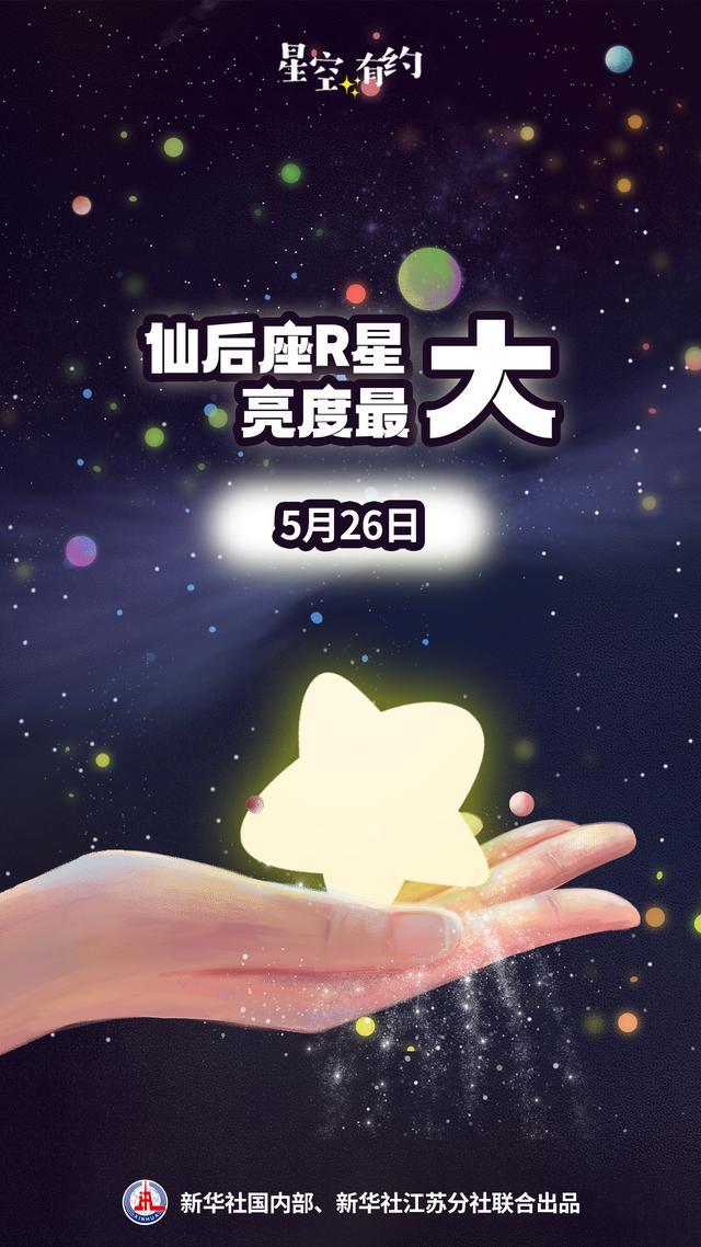 5月26日,一颗多数时候无法凭肉眼看见的星星——仙后座R星将达到最大亮度4.7星等。有兴趣的公众可以在午夜后望向天空东北方向,尝试凭肉眼观察这颗星。
