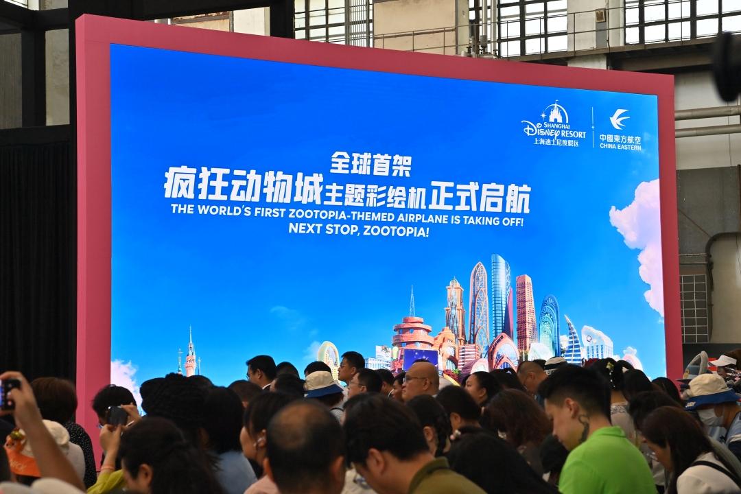 5月24日当天,主题飞机的揭幕仪式在上海一座特别设计的“疯狂动物城机场”内举行。揭幕仪式上,上海迪士尼度假区和中国东方航空的双方相关负责人共同为这架全新的主题彩绘飞机揭幕,来自疯狂动物城的朱迪和尼克也亮相现场,一起庆祝这个特别的时刻。