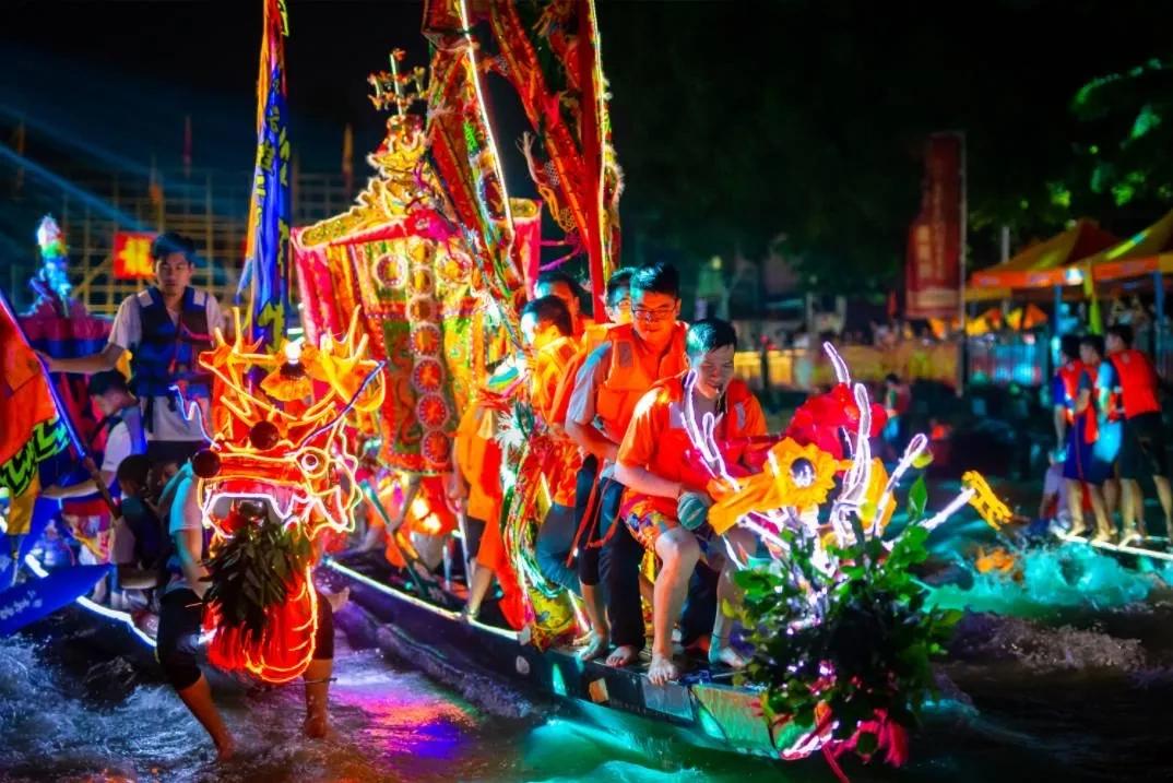 当夜晚来临,精心装扮的“夜龙”,在保留传统元素的基础上,水、灯光、音乐、烟花相结合,精彩纷呈。容桂南区夜龙汇游还因此登上央视,火热出圈……