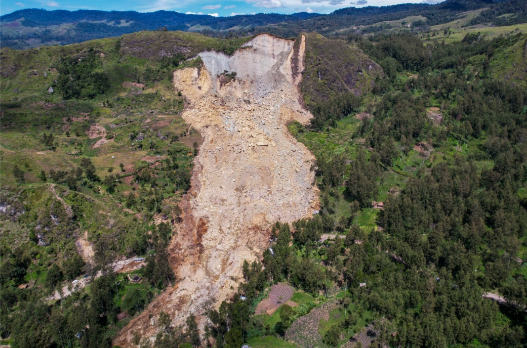这张联合国开发计划署提供的照片显示的是5月27日拍摄的巴布亚新几内亚恩加省穆利塔卡地区发生山体滑坡的区域。
