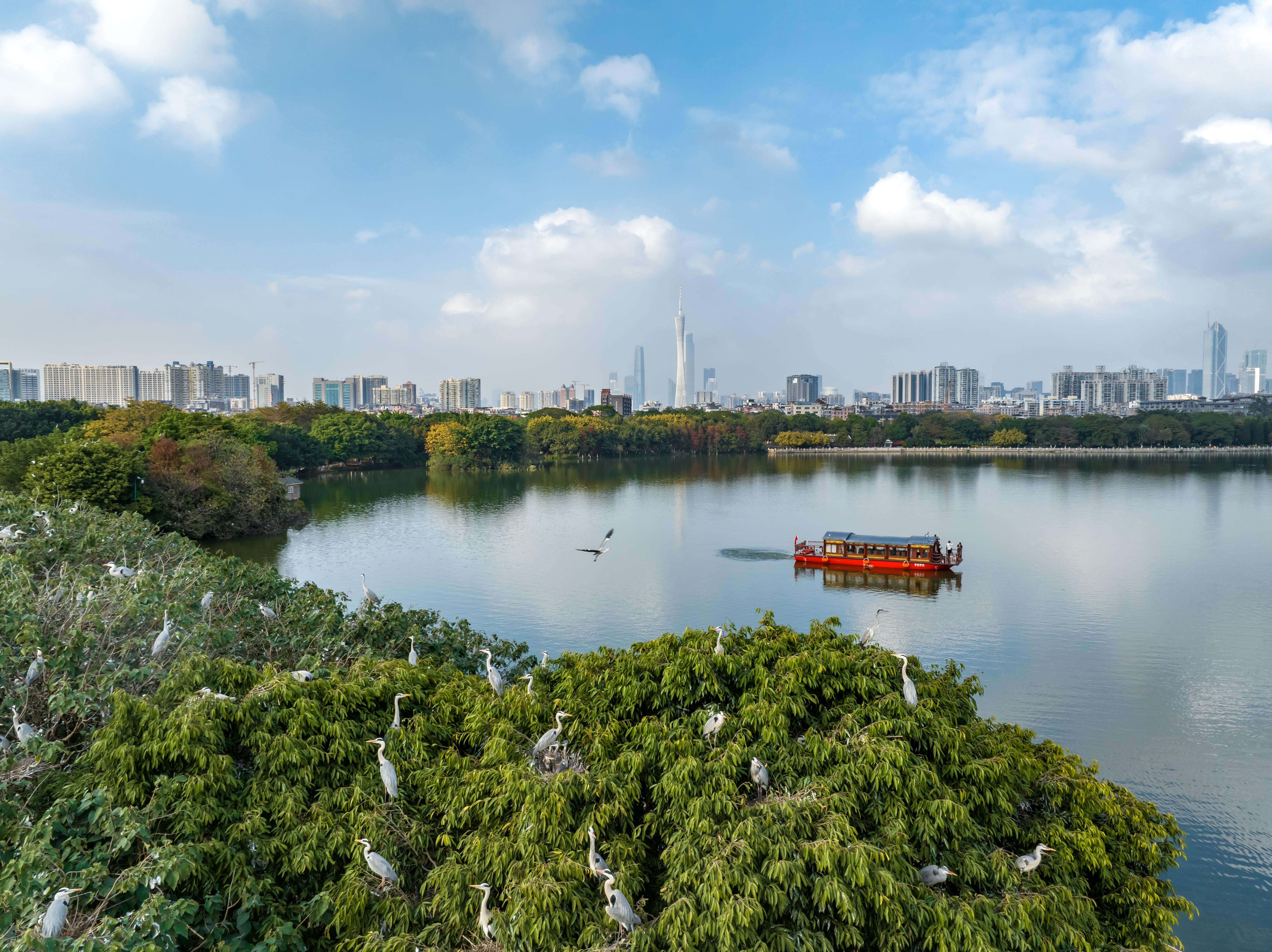 海珠湿地的湖心岛成为了“小鸟天堂”