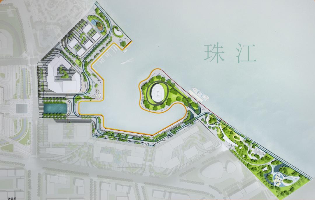 邓乐路介绍,2022年他着手该项目的设计时,发现其处在城市中心,有别于此前设计过的其他港湾,十分独特,因此,他以“一和唯一”为主题展开设计,从“五个一”维度进行阐发。“第一个‘一’是一湾水港,约7万平方米的水域是非常宝贵的资源,将成为游艇等水上生活方式体验地;第二‘一’是一岛,在港湾中心设计一岛,它将是令人流连忘返的港湾明珠;第三个‘一’是一条滨水带,在满足珠江防洪等功能性需求的基础上,打造别具特色的亲水岸线;第四个‘一’是一条休闲碧道,保留岸上树木资源,以此为基础塑造自然的港湾景观;第五个‘一 ’是一系列可出圈的体验型场景,可承载赛事、文艺演出、展会等一系列精神文化活动,使港湾成为充满人文演绎的发生地。”邓乐路介绍。最终,健康港港湾设计有滨水公园带、水上巴士码头、水上庆典广场、碧道驿站、亲水平台、榕树运动场、滨江主题创新商业街区、大地剧场等特色场景,集码头、休闲、旅游、商业等多功能于一身。