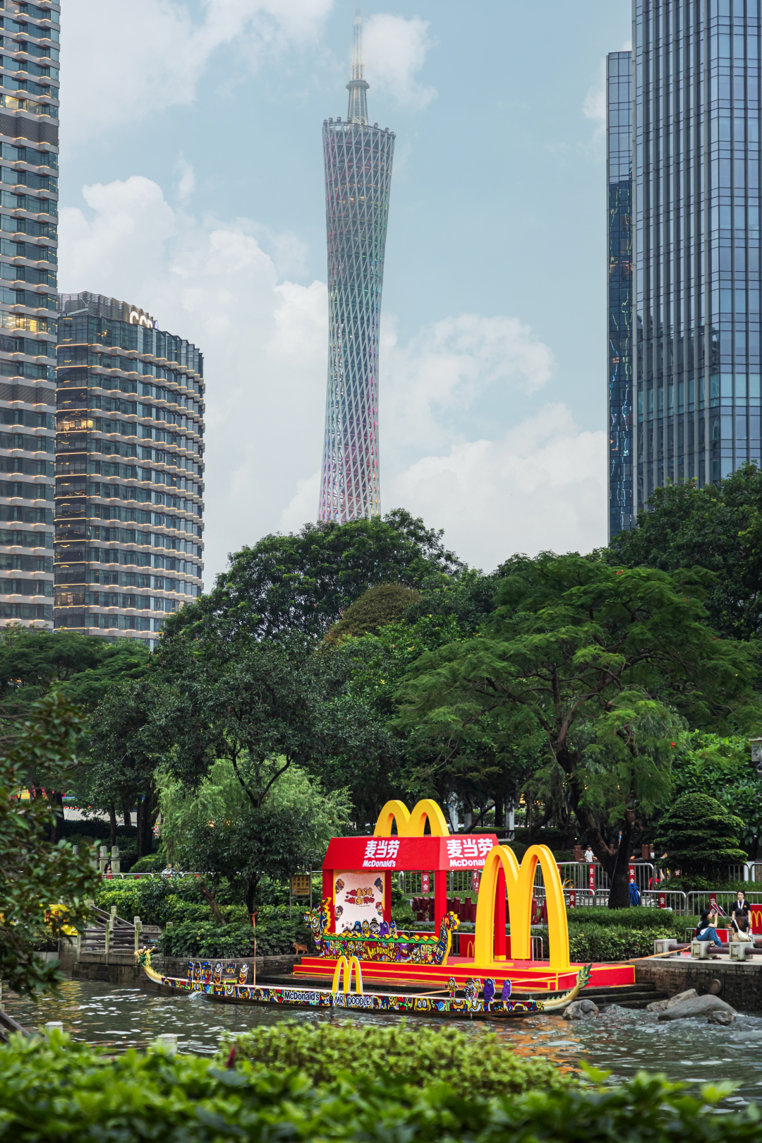 今年,猎德村招景跨界创新,首次邀请国际品牌麦当劳加入,打造了一艘涂鸦主题的创意龙舟,并由广州本地员工组成了麦麦龙舟队,参与猎德村招景,与当地村民以龙会友、以情作舟,用创新的方式传递独特的宗族情谊,以及南粤深厚的人文故事。除了深度参与猎德龙舟招景流程外,麦当劳还打造了一系列与端午、龙舟相关的创意装置及限定周边,活动傍晚,麦当劳与猎德村的村民们共享龙舟饭,共同庆祝这一传统节日。