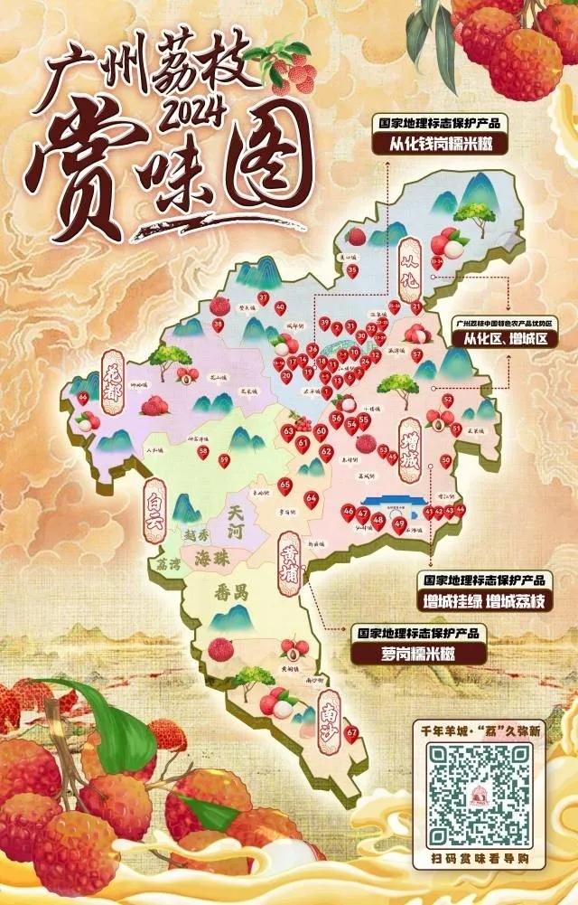 在2024年广州荔枝营销推介活动暨从化荔枝节启动仪式上,区农业农村局相关负责人推介了从化荔枝,现场还发布了2024年广州荔枝赏味图,公布果园的联系方式、位置导购等。