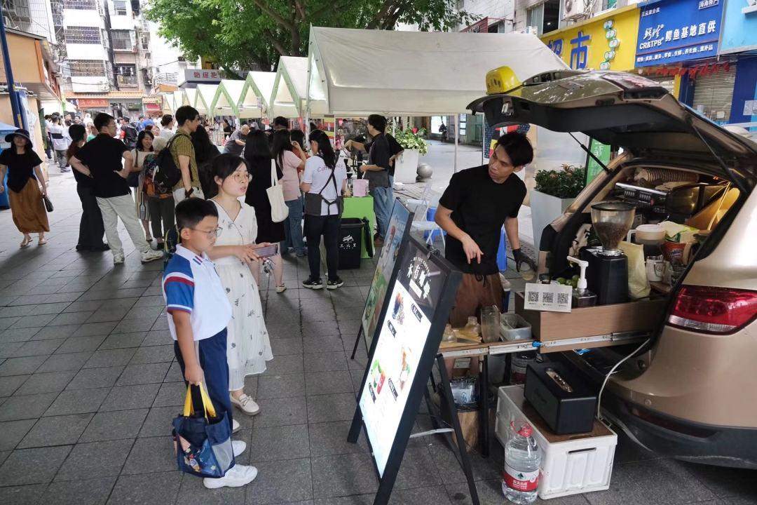 参与者不仅可以盲品、亲自动手制作咖啡,还能观赏到专业咖啡师进行冲煮拉花表演。不少居民、群众还与咖啡师交流,了解咖啡种植、加工、烘焙等知识。一些工作人员更是穿上当地的民族服装,让摊位充满异域风情。