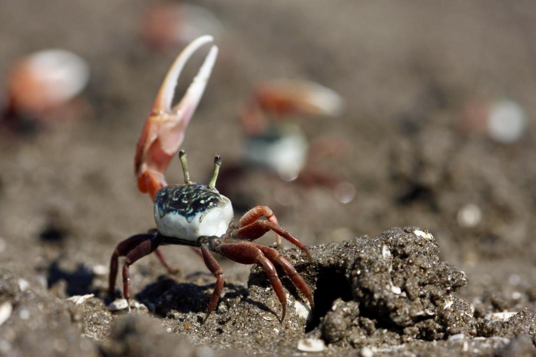 中国科学院华南植物园生态与环境科学研究中心覃国铭博士等科研人员对两个不同红树林群落中招潮蟹扰动前后土壤中的甲烷排放、土壤理化性质以及甲烷循环微生物群落组成进行分析。结果显示,与未经招潮蟹扰动的土壤相比,招潮蟹的扰动导致土壤中的甲烷排放率增加了86%-430%。招潮蟹扰动土壤铵根离子、pH值和可溶解性有机碳含量较高,但硝酸盐、硫酸盐、盐度和总氮的浓度较低。