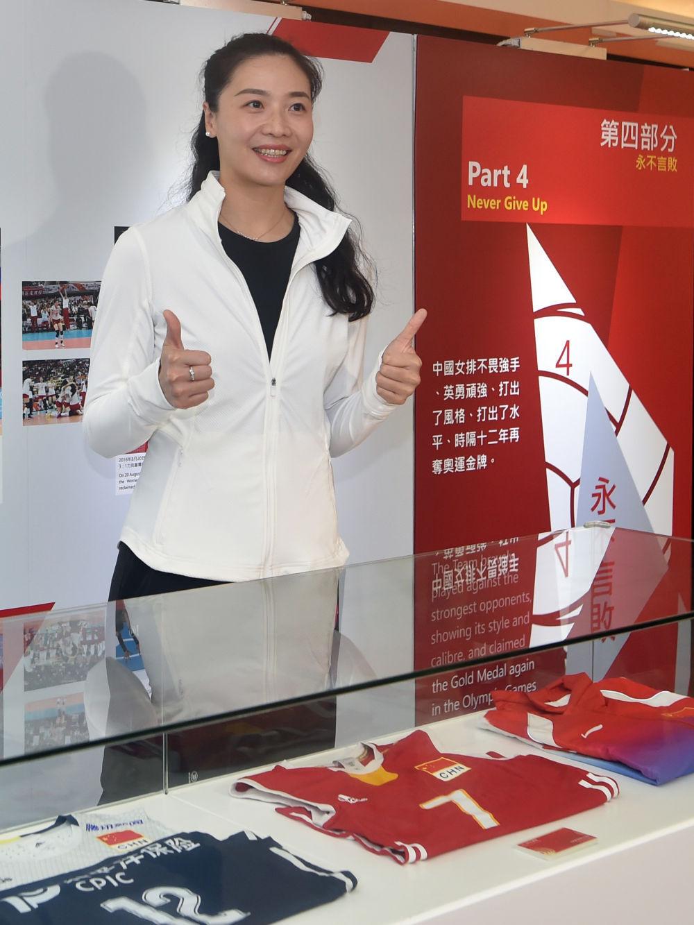 前女排队长魏秋月也参加了展览揭幕仪式。曾随中国女排赢得里约奥运会金牌的魏秋月说,希望香港的运动员和学生看了展览后,能把女排精神运用到平时的生活中,“在挫折中不断成长,让自己成熟,在挫折中让自己达到新的顶峰”。