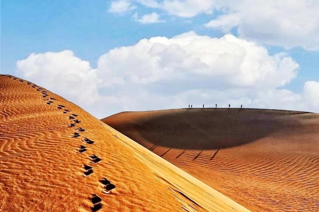 这里的沙子细腻干净,在上面赤足行走的舒适度堪比漫步海滩,沙山线条被塑造得柔美多变。