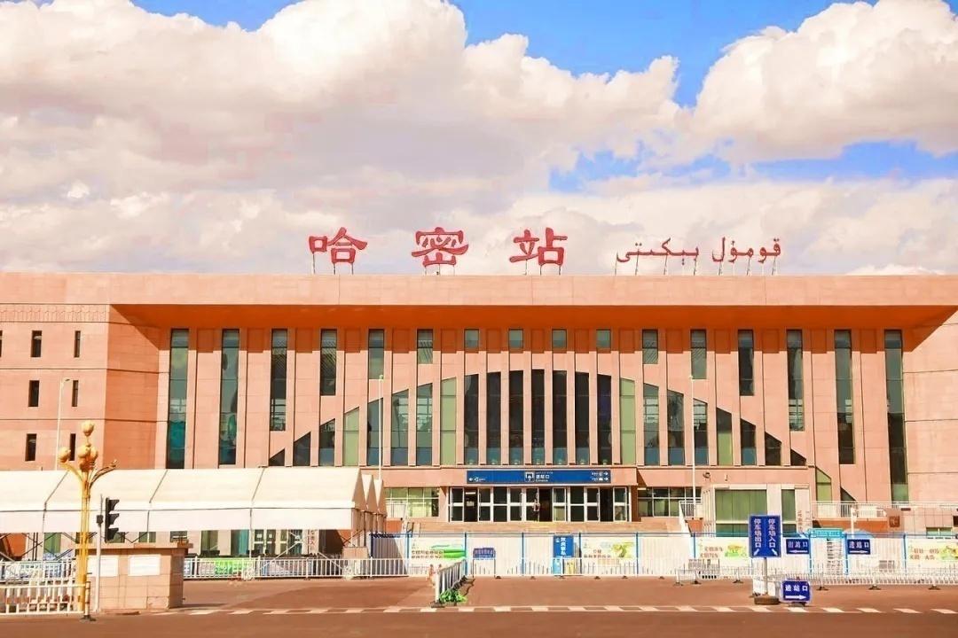 哈密站是兰新铁路、兰新高铁上的一等站,站房两侧的门型楼体寓意新疆东大门,中部暗含的圆弧造型似一道彩虹,寓意着哈密市欣欣向荣的美好前景。