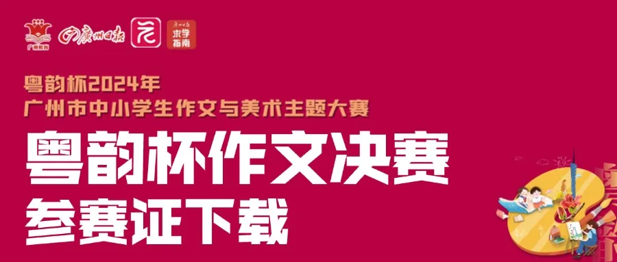 “英雄花开英雄城”粤韵杯2024年广州市中小学生作文与美术大赛(以下简称“粤韵杯”)是由广州市委宣传部、广州市纪委监委指导,广州市教育局、广州日报社主办,广州市国防教育中心支持,广州日报求学指南、广州广报文化发展有限公司、岭南少年报协办。目前粤韵杯决赛进入冲刺阶段!为了确保大家顺利参加比赛,特此提醒以下事项: