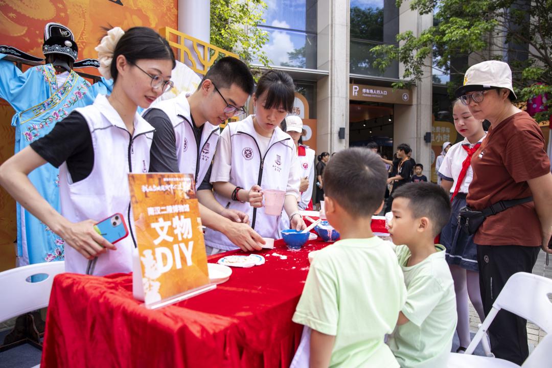 活动现场设置搭建2个主题互动区域,分别为“文明实践我行动”和“非遗项目体验区”,吸引市民群众以及青少年“沉浸式”参与新时代文明实践活动。