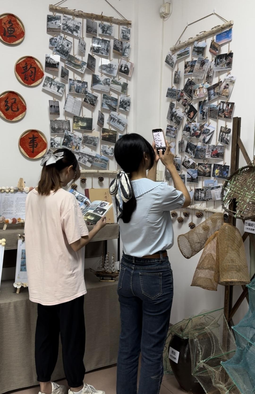 现如今,“渔村时光阁”已经顺利建成,正式对外开放。走进展厅,仿佛每一件物品都在诉说着渔村的故事,传递着群星村渔村的情怀。场室内精心布置了多个展区:“渔韵纪事”绘就渔村沧桑巨变,折射出渔村多年来的发展成果;“渔乡风物”展现渔具风采,每一件展品背后都藏着渔民的智慧与汗水;“渔村社情”则从村内一件件民生实事中体现出社区服务的温情与幸福;“渔梦工坊”则展现出新时代青年文创者对渔村文化的“青春式”理解,映照出他们的匠心独运。