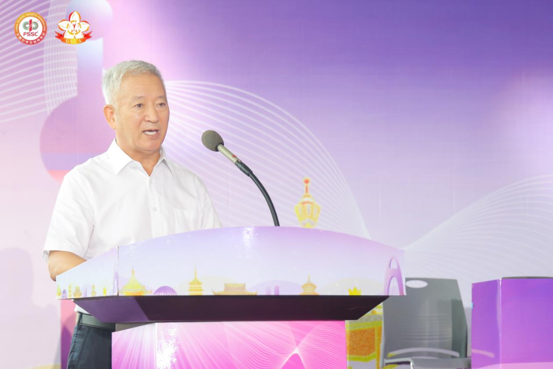华南农业大学珠江学院校长蒋恩臣在开幕式上致欢迎辞,他代表学校向来自全国各地的来宾、运动员、教练员、裁判员们表示诚挚欢迎。他表示,啦啦操是一项青春、活力、时尚的新兴体育项目,随着“一校一球一操”和“一校一品一操”模式在全国各大、中、小学普及推广,啦啦操已逐步发展成为参与人数最多的校园体育赛事之一。作为赛事承办方,华南农业大学珠江学院将秉持高质量服务宗旨,展现啦啦操魅力,不仅要深度促进学校体育事业的全面繁荣,更要推动啦啦操运动的广泛传播,推动学校阳光体育活动蓬勃发展。