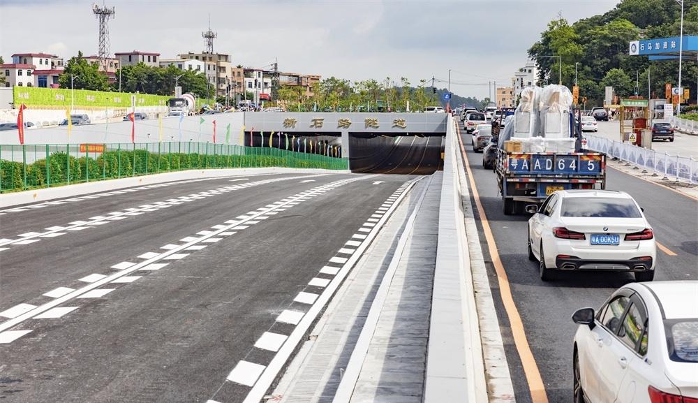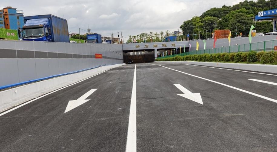 广花路快捷化改造完成后,全线双向6车道拓宽至双向8-10车道,取消主线红绿灯,设置6座隧道、2座跨线桥、3对掉头匝道、19座人行天桥、5座过街通道。新石隧道是全线最后一座隧道,其建成通车,意味着广花路快捷化改造迎来了主线正式通车。
