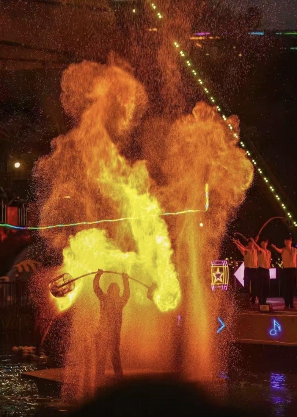 期间,游客可参与各种互动任务、互动小彩蛋,如听西关小姐讲述岭南故事、与孔子“文斗”、跟武侠小姐姐学习武术等,惊喜不断。尤其值得一提的是,8月1日至8月11日期间,特别安排每晚两场非遗火壶表演,灵动跳跃的火花璀璨夺目,非遗传承人将为您展现传承千年的精湛绝技,寄托了人们对美好生活的祈愿,让您在惊叹中感受传统文化的博大精深。丰富的互动表演增加了游客的参与度和消费意愿,为景区的夜间经济注入活力。