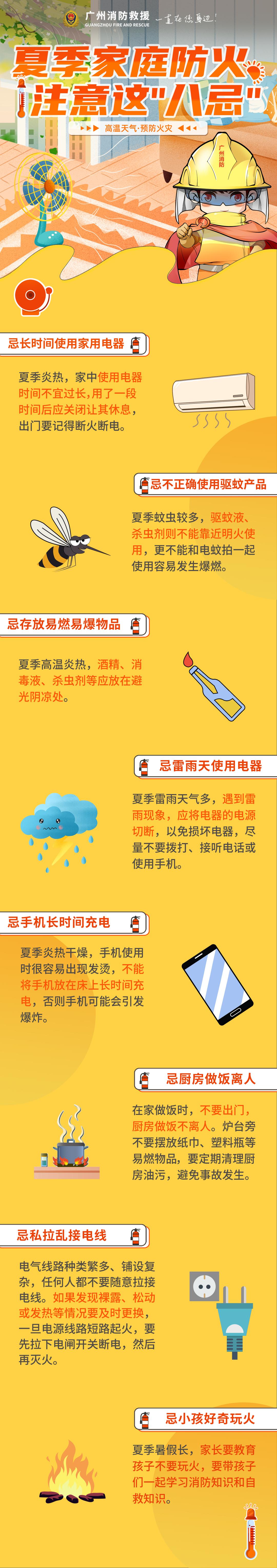 消防部门提醒:短路故障、线路过载、接触不良、散热不良以及使用不当等都极易引发电气火灾。夏季高温天气,要注意用电防火安全。使用电器,不要超负荷,不要长时间通电;一旦发生电气火灾,应立即关机并拔掉电源或拉下总闸,用棉被、毛毯等不透气物品将着火电器包裹,让火熄灭。