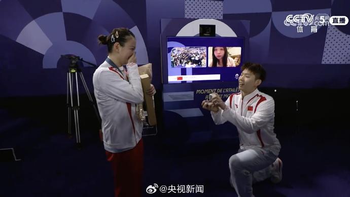 今晚,黄雅琼/郑思维羽毛球混双夺冠。颁奖仪式后,同是国羽成员的刘雨辰向黄雅琼求婚!见证甜蜜一刻,祝福雅琼,永远幸福!