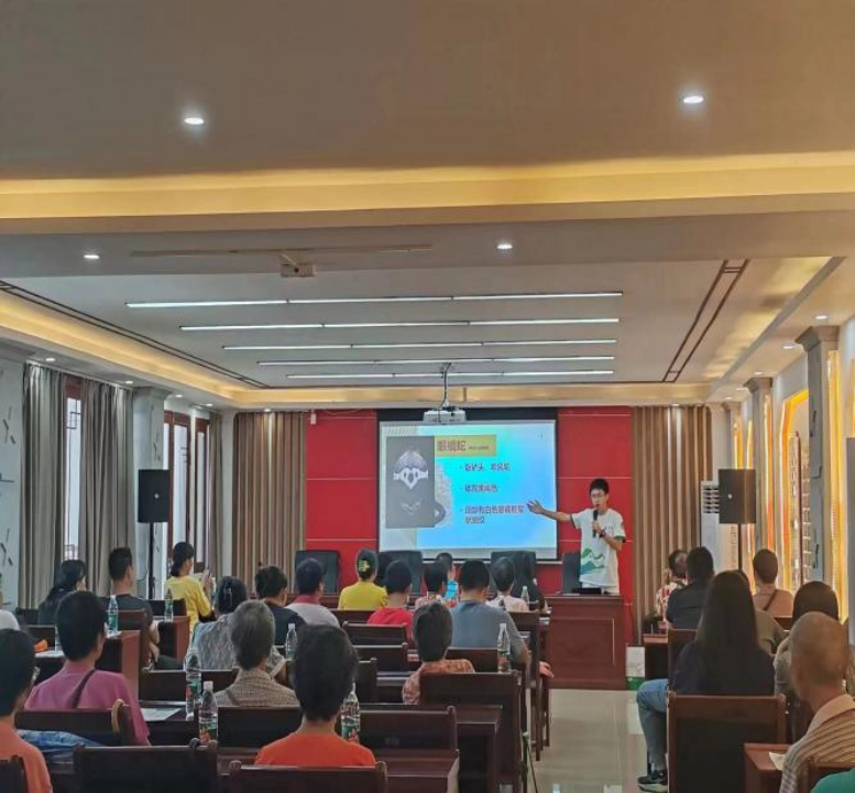 如何帮助当地村民提升蛇伤急救知识、增强他们自救与互救的能力?实践团成员通过幻灯片(PPT)插入图片直观展示,对蛇类的外观特征、生活习性、蛇毒分类及咬伤后果进行专业讲解,同时还教会村民准确辨别蛇种,掌握蛇咬伤后如何紧急处理,纠正他们原有的错误急救方式,避免二次伤害。