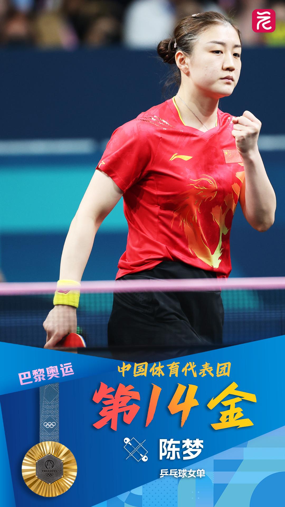【卫冕成功!陈梦夺乒乓球女单金牌,孙颖莎摘银】8月3日晚,在巴黎奥运会乒乓球女单决赛中,中国队的孙颖莎与陈梦经过6局大战,最终陈梦以4比2击败世界排名第一的孙颖莎,继2020东京奥运会之后再夺女单冠军。查看详情>>
