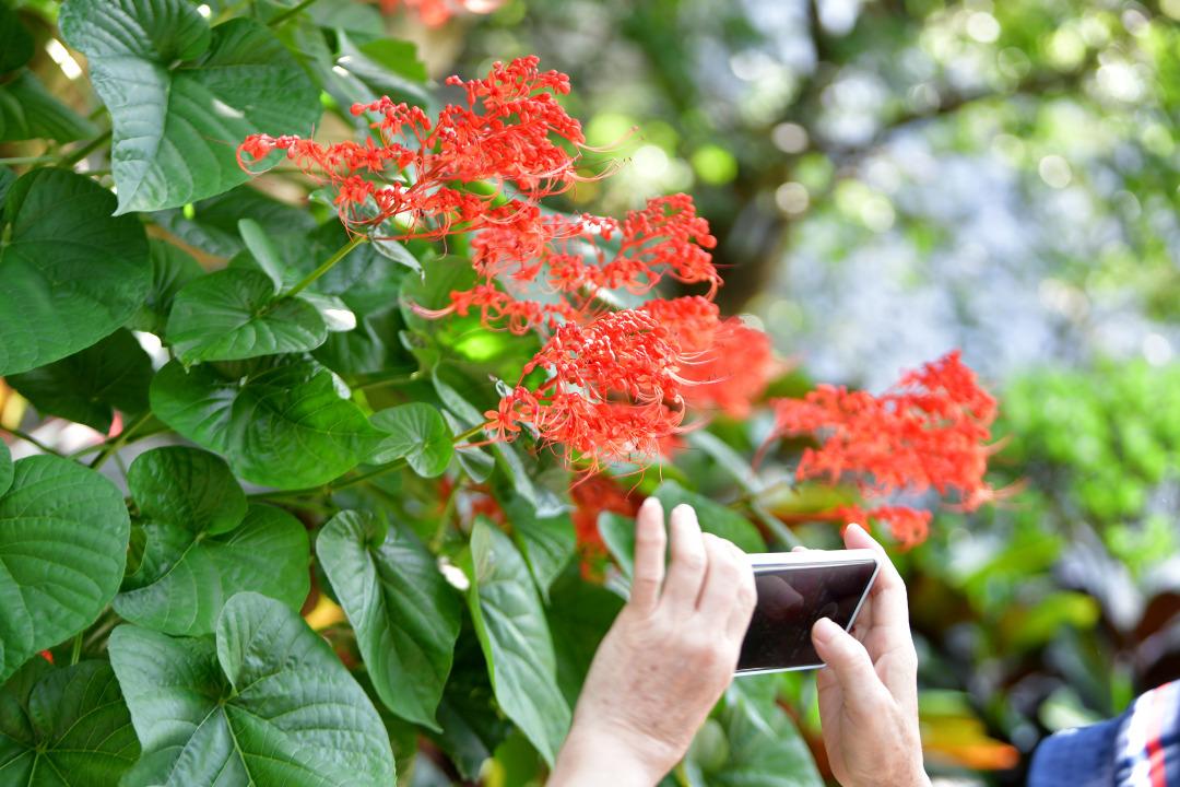 山峦叠翠、溪涧纵横,云溪植物园立足白云山的生态资源禀赋,为各类植物提供了良好的生产保育环境。据介绍,植物园依据植物生长习性,通过地形塑造、植物配置、生态修复等手法,构建了新优花卉展示园、睡莲植物展示园、蜜源植物展示园、珍稀植物展示园、野牡丹展示园5个专类展示园,展示了从热带到亚热带不同气候类型的植物种类,为游客提供了一个全面了解生物多样性的窗口。“植物园位于白云山西麓,园内溪涧潺潺,这是‘云溪’这个名字的由来。”云溪植物园主任吴毓仪向记者介绍道。