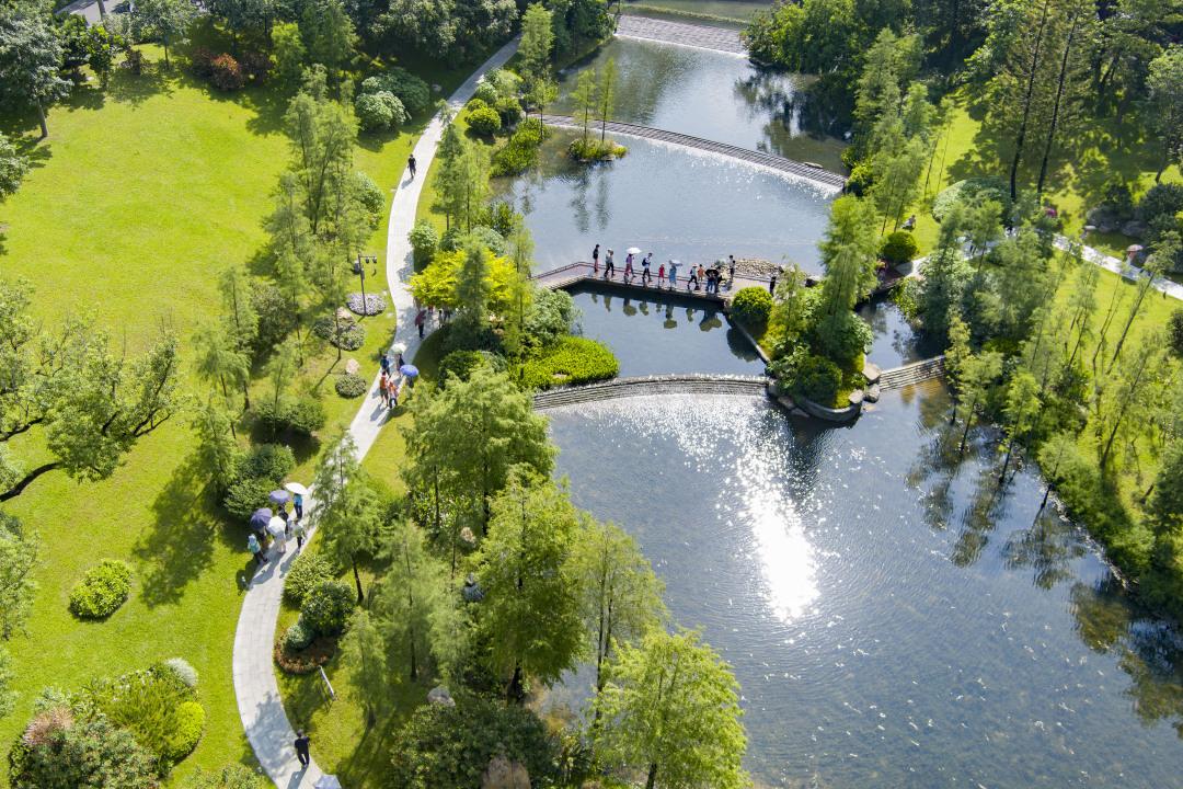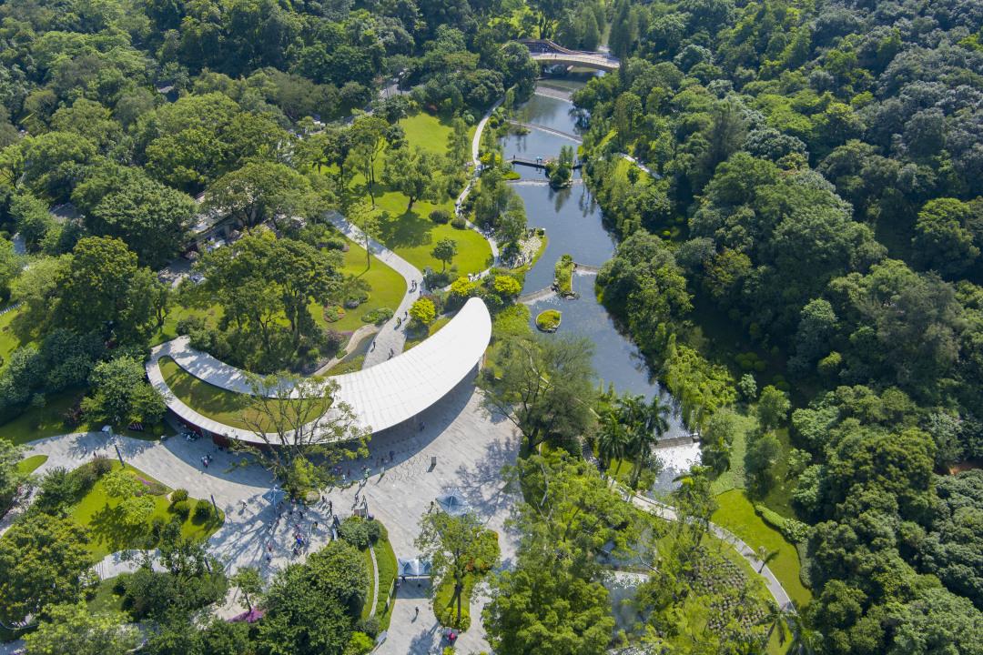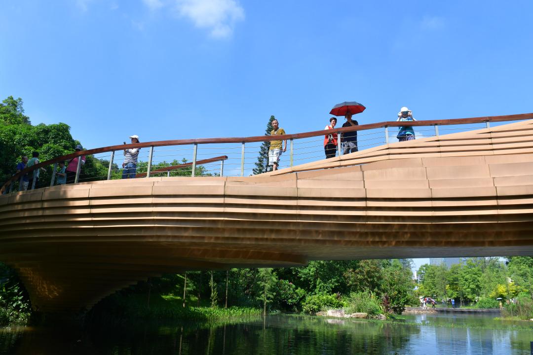 “不出城廓而获山水之怡,身居闹市而得林泉之趣”。记者了解到,云溪植物园在设计和建设过程中,将“山水相融”的自然美学与现代园林设计理念相结合,打造出“一带融山水、两径引两庭”的空间布局,将岭南园林的山水理念发挥到极致。漫步于云溪植物园,公众可体验到“望谷、溯溪、赏园、观山”的四重游园感受,仿佛身处一幅流动的山水画卷之中。园内有彰显珠水云纹的虹桥和云桥,有会进行光合作用“活树凉亭”,还有浣溪追云的望溪台……游客在欣赏自然之美的同时,也可深刻感受岭南文化的深厚底蕴。