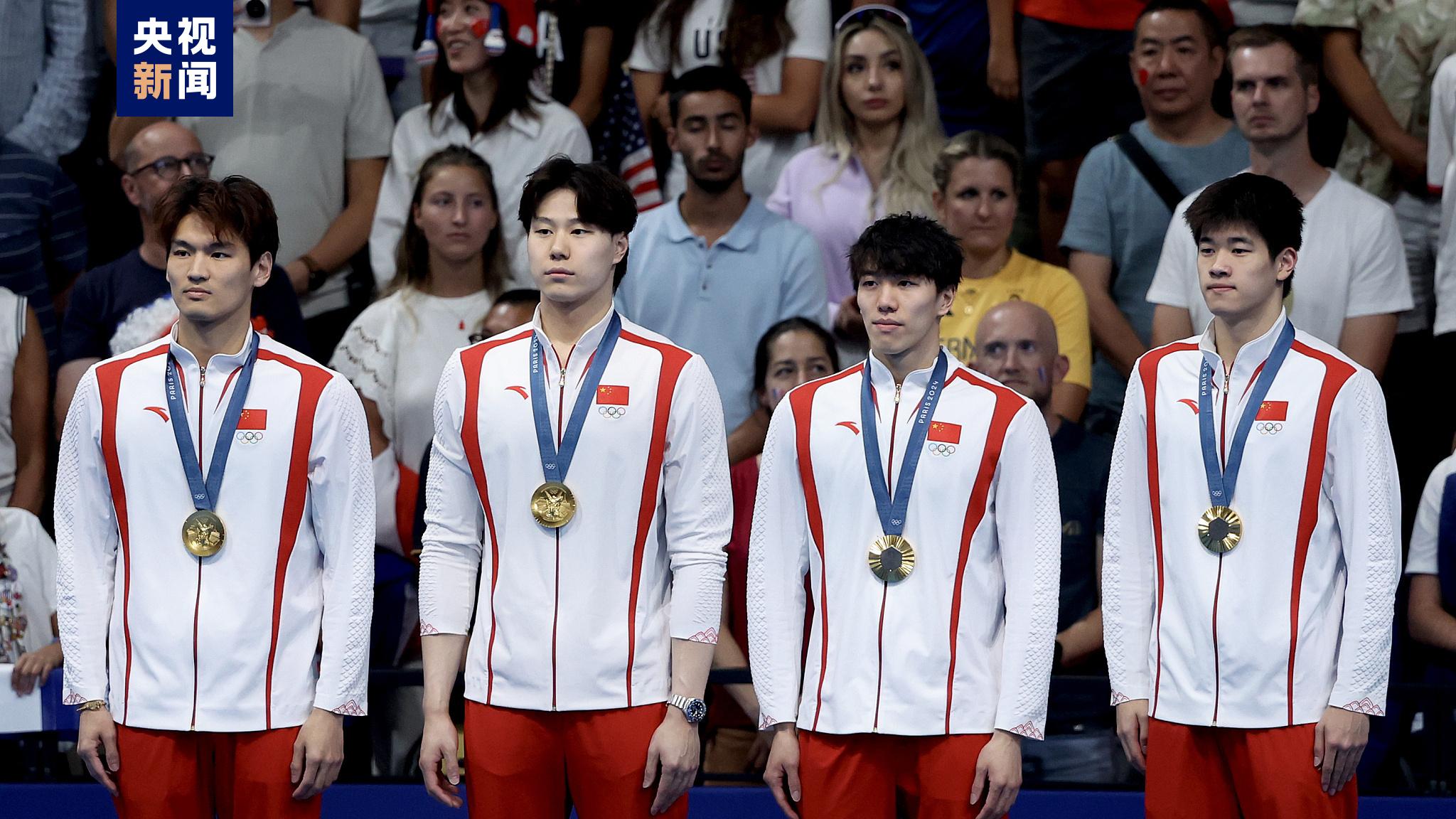 北京时间8月5日,在巴黎奥运会游泳男子4×100米混合泳接力决赛中,中国队夺得金牌,这是中国代表团在本届奥运会上获得的第19枚金牌。