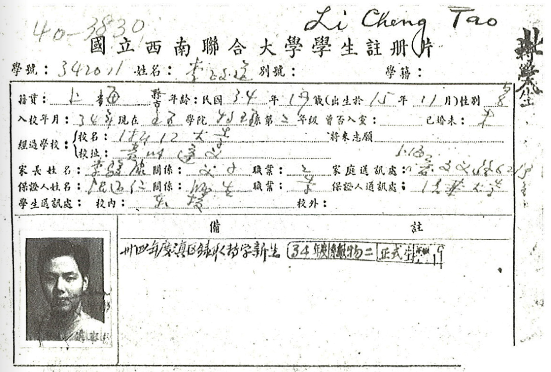 青年时期的李政道曾在浙江大学求学,师从“中国雷达之父”束星北和“两弹一星元勋”王淦昌。后来由于战争动乱导致迁入贵州后陷入困境,学校不得已暂停办学。几经辗转,李政道于1945年作为北京大学学生注册,转学至西南联合大学物理系。
