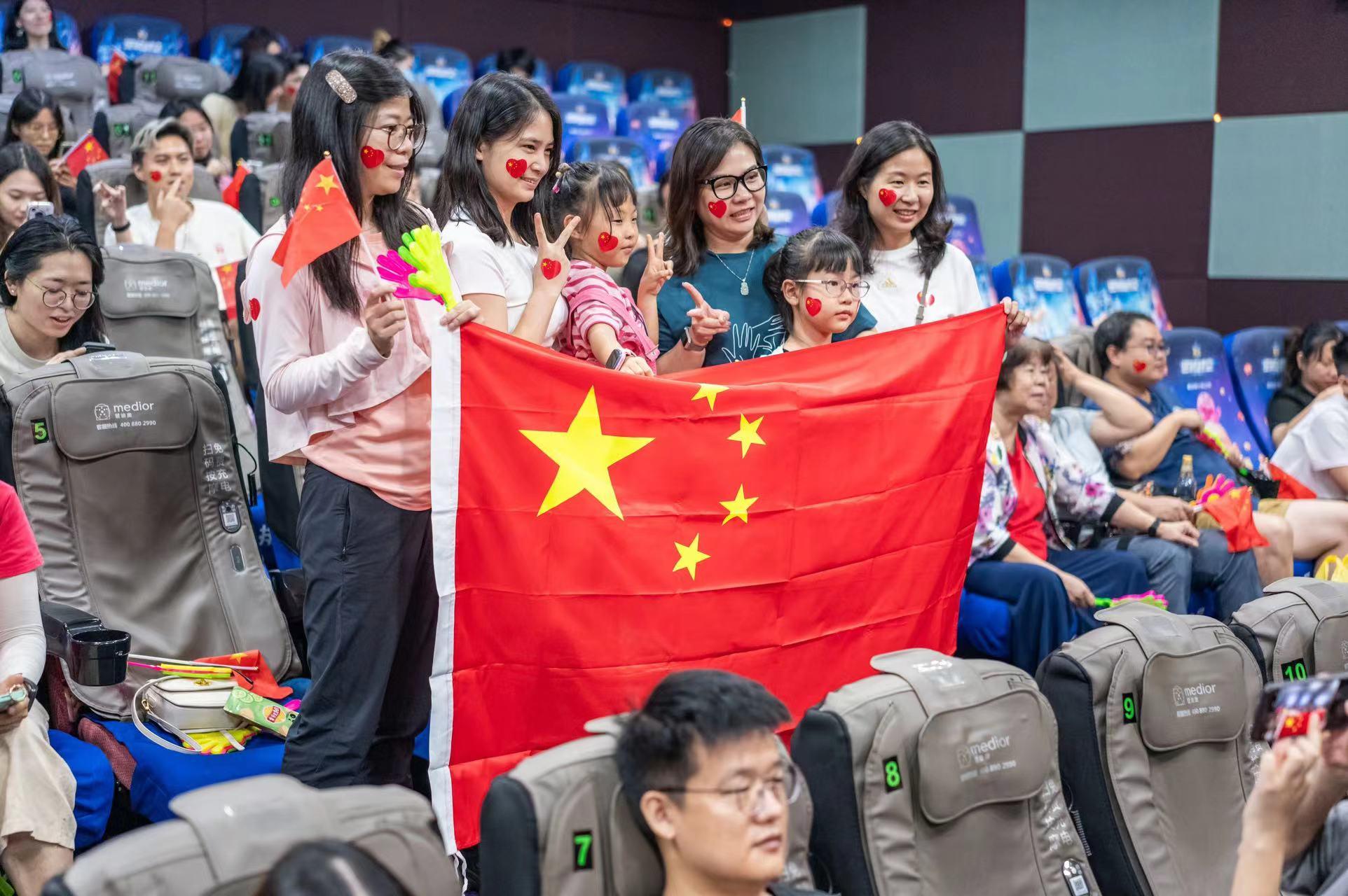 现场有不少观众表示,与自己的亲朋好友,或是其他陌生人一起分享中国健儿的夺冠时刻,心情非常激动,“大家一起挥舞着国旗、唱国歌,那种氛围太好了。”