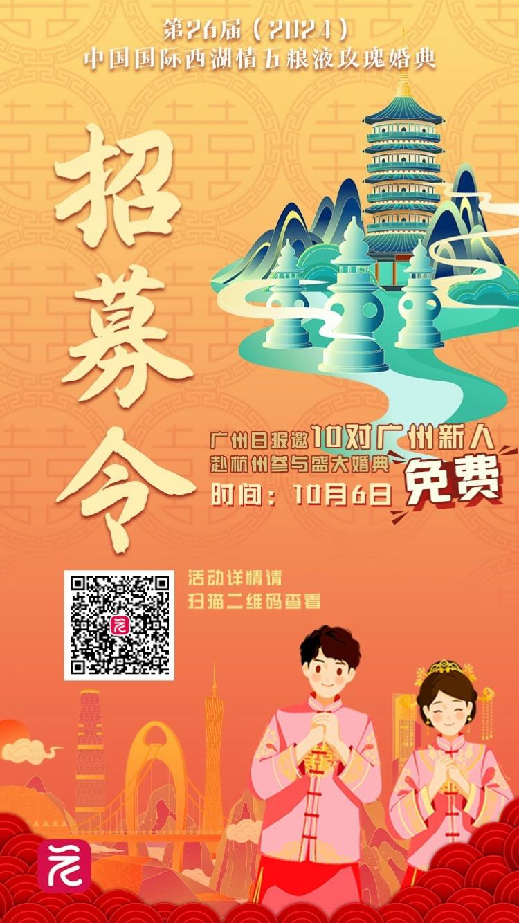 8月5日,第26届(2024)中国国际西湖情五粮液玫瑰婚典(以下简称“玫瑰婚典”)走进广州,向广东新人发出“邀请函”,诚邀广东新人于今年10月6日赴爱情之都杭州缔结百年之好。广州日报与玫瑰婚典组委会联合开展本届玫瑰婚典广州站招募活动。