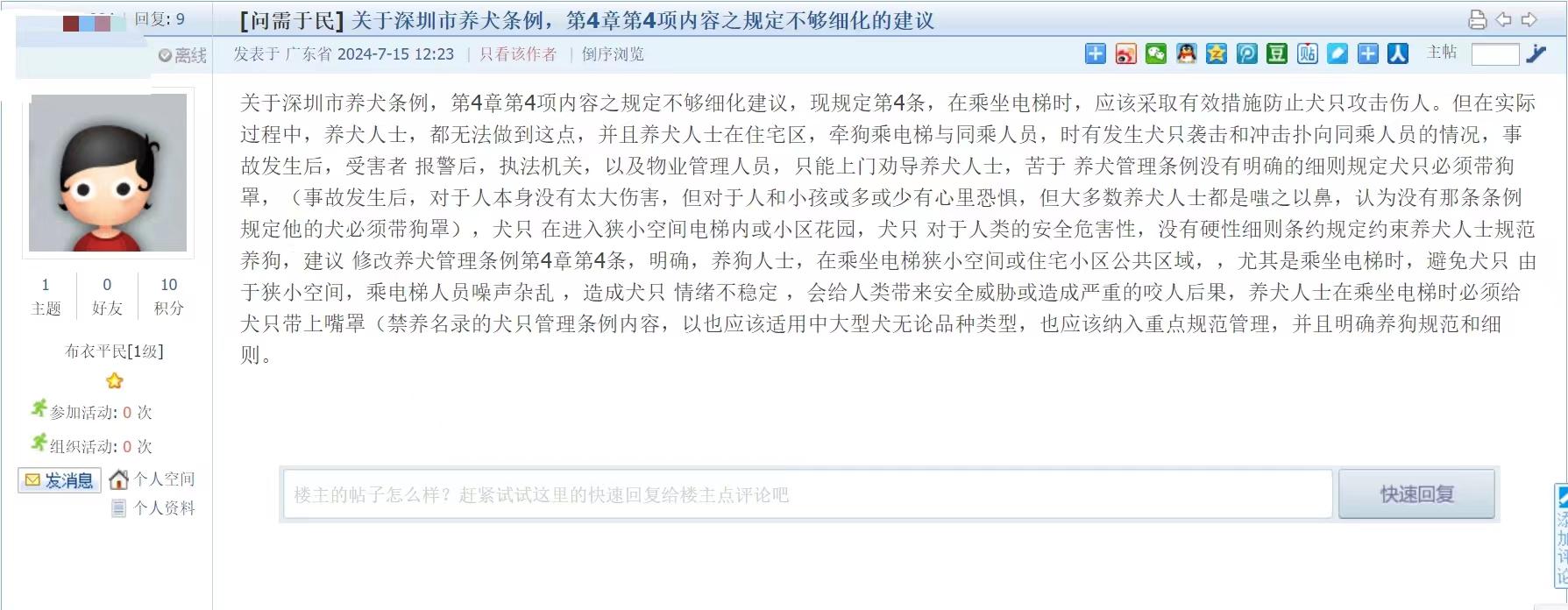 在该网友留言下方,不少网友纷纷跟帖留言,对其提出的建议表示赞同,认为应该对出入电梯的犬只进行规范管理。