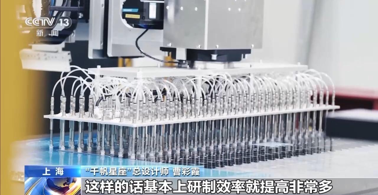 “千帆星座”总设计师 曹彩霞:我们就考虑目前这种快速研制,包括现在平板卫星这种堆叠发射,从结构设计到单机的设计,采用了全数字化的方法;在生产环节,我们也采用数字化自动化测试的方法,单机过来以后,整星进入一个脉动产线,相当于是数字化方法控制的,这样研制效率就提高非常多。