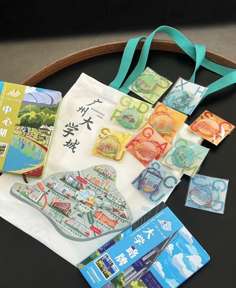 打造文创品牌。为塑造更多元化、更具大学城特色的“文化记忆”,为城市形象赋能,广州大学城不断凝聚青年人才力量,积极推动文化创意产品的开发,指导广州大学城文创工作室对小谷围传统村落及标志性元素进行文化挖掘及再设计,制作出大学城精美文创产品,以文创IP为纽带,为传统文化注入活力。目前,共设计推出大学城“地标”“高校”等系列文创产品60余套。2024年,正式推出大学城IP阿谷,完成阿谷IP形象设计、表情包设计、主题设定、形象延展等内容,携手广东科学中心落地第一个大学城文创线下销售点,与多个高校商铺达成线下门店文创供应合作,并与相关共享电动车达成IP形象联名投放合作。产出的多个文创产品,已在大学城科普科教启动仪式、公益研学、文化艺术活动等诸多场合亮相,进一步增强文化创意的渗透力、辐射力和带动力。