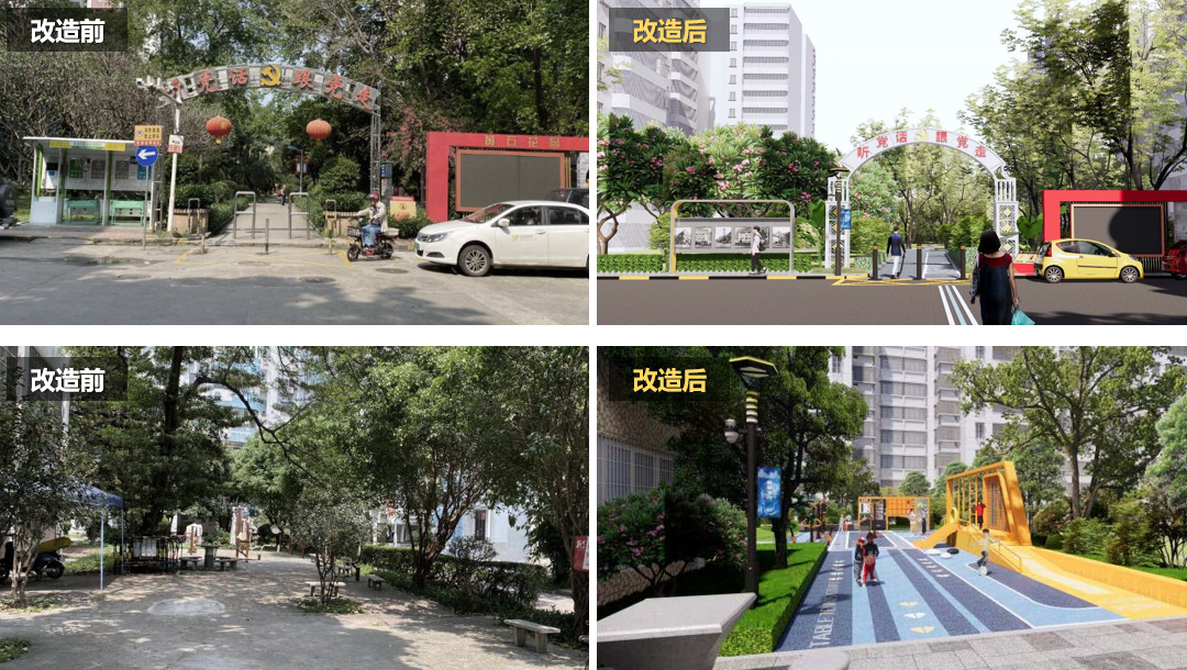 在小区面貌提升的改造过程中,政府部门通过问卷调查等方式,厘清民生短板并形成清单。改造通过优化交通,组织动线,释放空间重新规整停车泊位,缓解人车矛盾;引入艺术、自然、运动、科技、共享空间,打造多个特色空间节点,强化社区主题特色,增强社区居民的认同感与归属感。