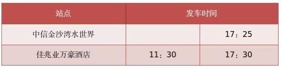 落客点:中信金沙湾水世界、佳兆业万豪酒店