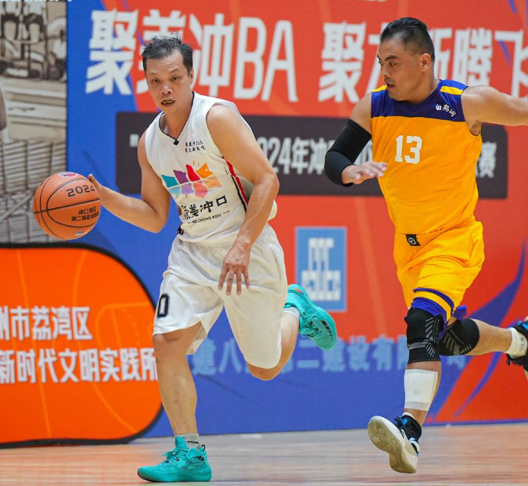 当天,随着裁判一声哨响,东道主冲口街道队与白鹤洞队为观众带来一场激烈的“冲BA”揭幕赛。上篮,防守,突破,进球,球鞋与地面的摩擦声、裁判的哨音、篮球入网的声音、震耳欲聋的呐喊助威声……汇聚成这个8月最昂扬的奏鸣曲,响彻赛场。最终,白鹤洞队以43:31战胜冲口街道队。