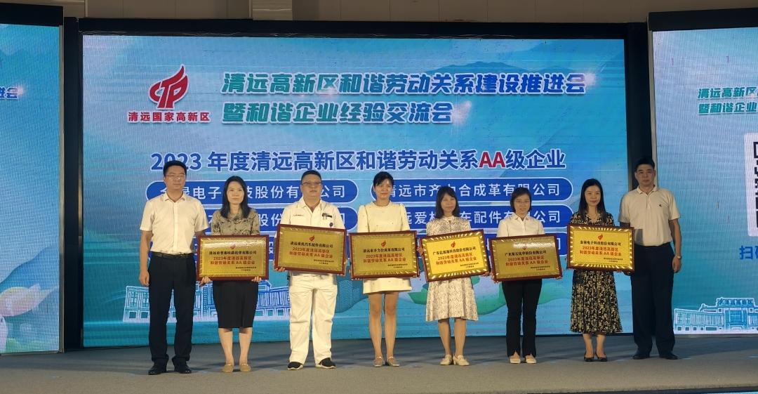 会议介绍了和谐劳动关系创建工作情况,为荣获2023年度清远高新区和谐劳动关系AAA、AA、A级企业授牌,活动现场,劳动关系和谐企业代表还分享创建心得,企业员工现场讲述和谐故事。