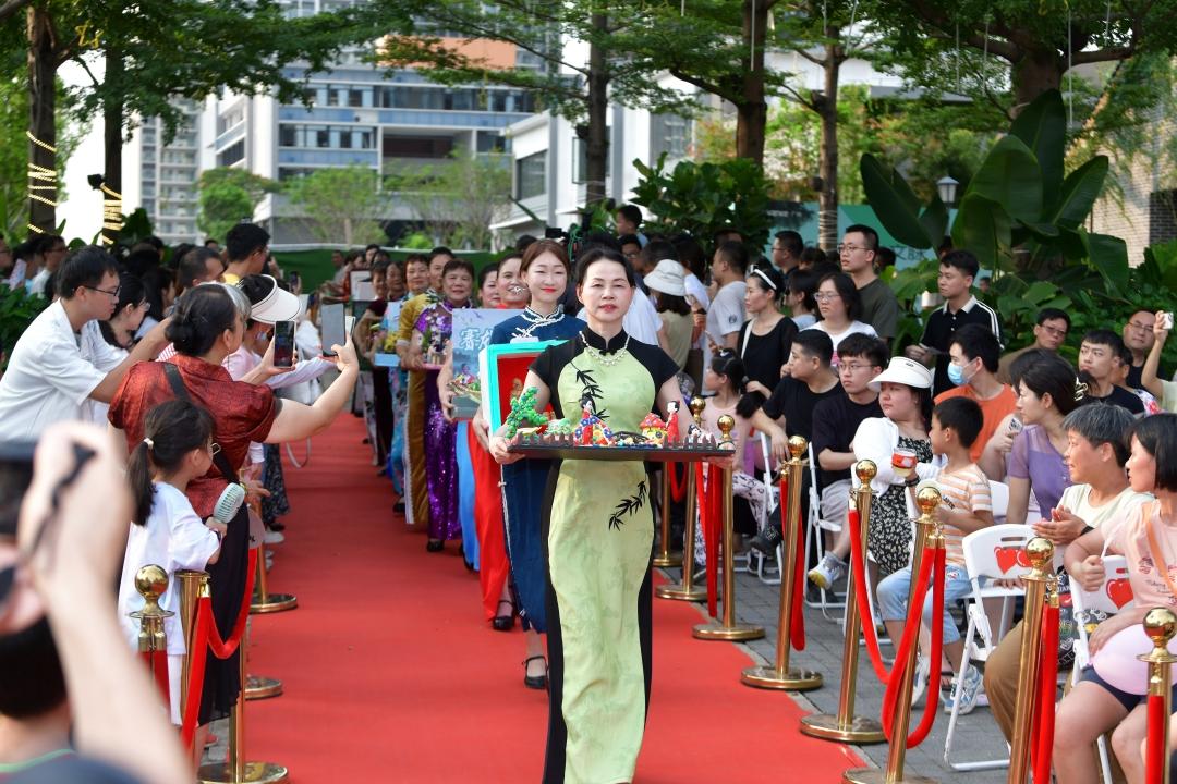 8月10日,“金雁有约 融德你心”七夕国潮游园会暨黄埔职工社交系列活动启动仪式在广州黄埔区融德里举行,正式开启“金雁有约”系列社交活动,现场再现了岭南宋制婚礼仪式,上演了一场精彩的七夕国潮秀,十余位巧娘带着乞巧作品走秀,耗时半个多月制作的剪纸服装惊艳现场。