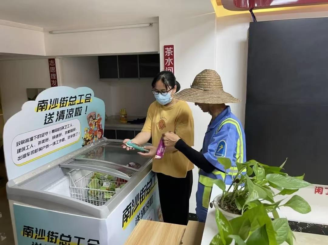 依托爱心驿站,南沙街总工会近日开展“送清凉”慰问活动,为户外劳动者代表送上清凉饮品约100份,让他们充分感受到工会“娘家人”的关心关爱。