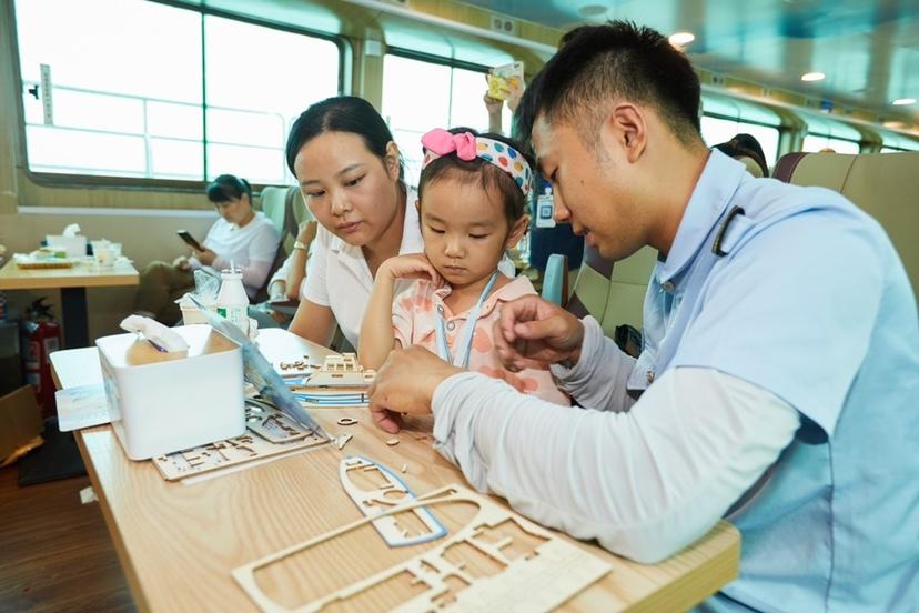 活动围绕“寻南沙文化脉络,叹海上工业奇观”主题,孩子们参观了广州南沙国际邮轮母港,了解这座现代化港口的发展建设理念和邮轮航线知识。职工和孩子们登上游船,沿着“海上看南沙”路线出发,途经南沙天后宫、舢舨洲岛、广州港南沙集装箱港区、深中通道、南沙全民文化体育综合体、南沙湿地公园等南沙标志性景点,了解到航线所经的重要地标,感受妈祖文化、“舢舨洲灯塔”守塔人的坚守,见证深中通道的宏伟、海洋交通运输的繁忙景象,体验游船上的各类专业设施。