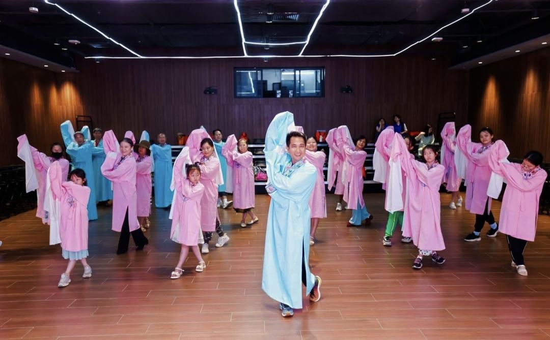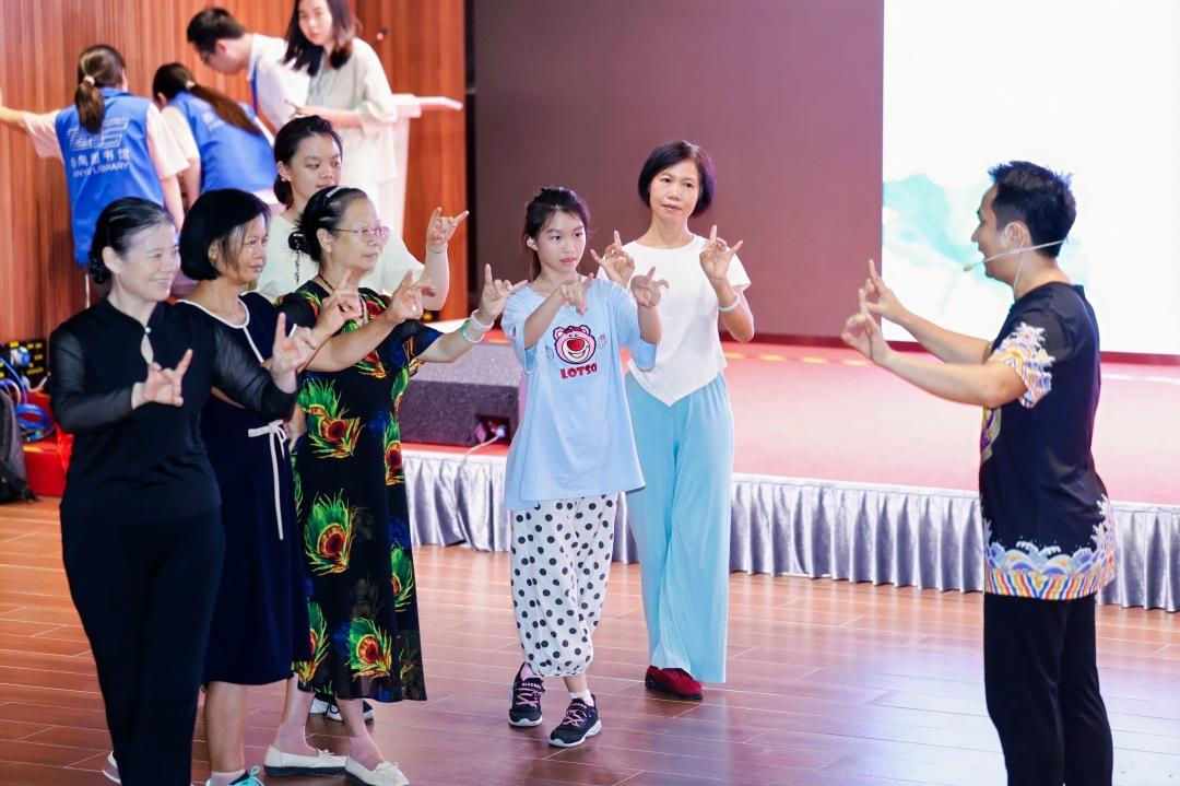 来自全区20多组家庭40多名学员齐聚一堂,在专业粤剧导师指导下,学习身段动作,拉开了“终身学习”非遗系列项目的序幕。