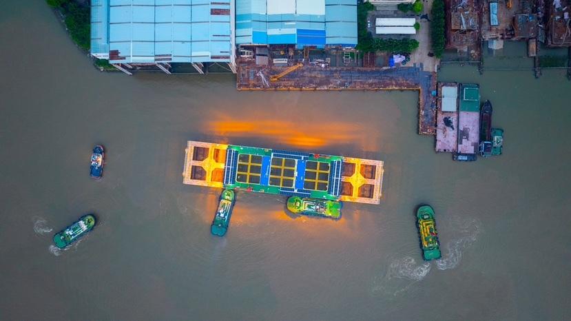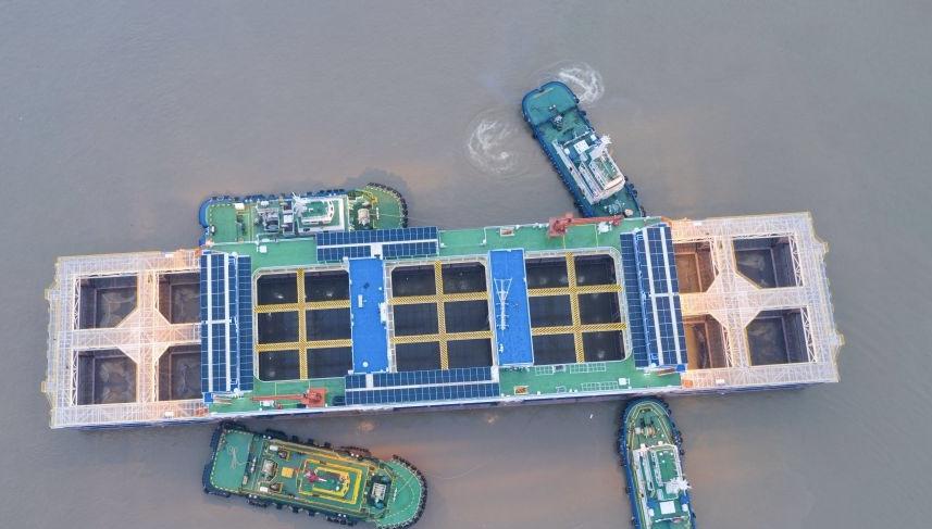 8月13日早晨6时许,迎着清晨的第一缕阳光,广州市番禺企业顺海造船制造的国内最大半潜式海洋牧场养殖平台“鑫环1号”,在噼里啪啦的鞭炮欢送声中,由四艘大马力拖轮拖离码头,踏向前往海南省东方市海域的征程。