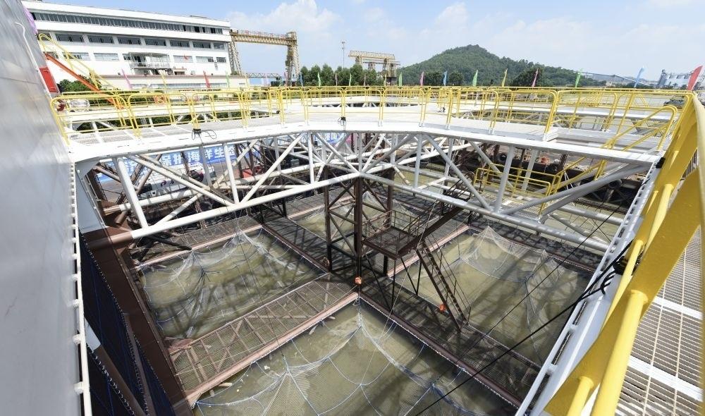 “整个航程大概5天时间,平台到达海南省东方海域后将通过首尾4个大锚、长200米的锚链固定在海面。”据海南东方鑫环海洋科技有限公司总经理王宁介绍,“鑫环1号”是一座集水产养殖、育苗、休闲垂钓、旅游观光于一体的综合性平台,主要养殖龙虾、石斑等名贵鱼,年产量约200万斤,产值7000万元以上。“我们用纯海水进行养殖,每天24小时有个大水体的交换,并且模仿鱼自然生长的环境进行养殖,养出来的鱼跟野生的没什么区别。”