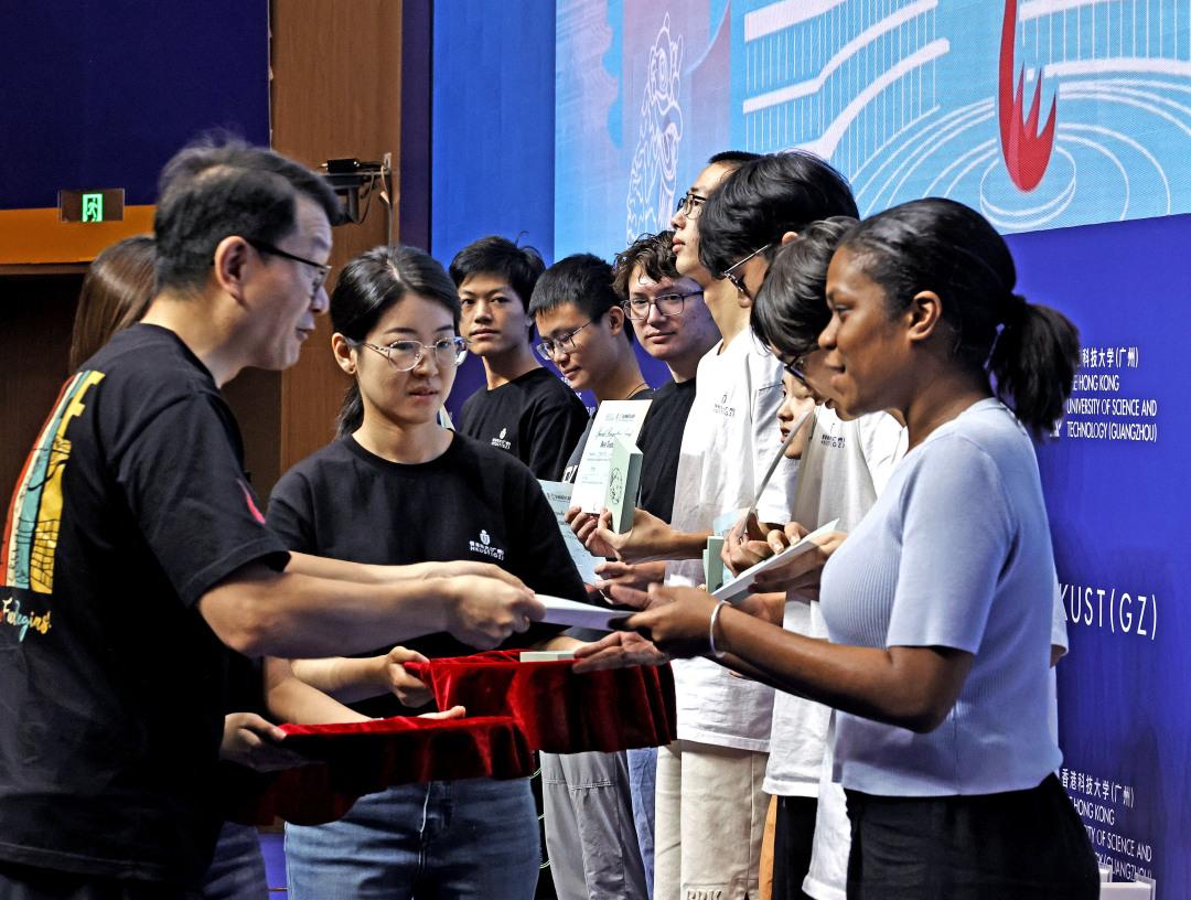 在13日举行的结营仪式上,香港科技大学(广州)校长倪明选教授、党委书记屈哨兵教授、首席工程师苏权科教授、协理副校长(教学)杨旸教授出席了仪式。