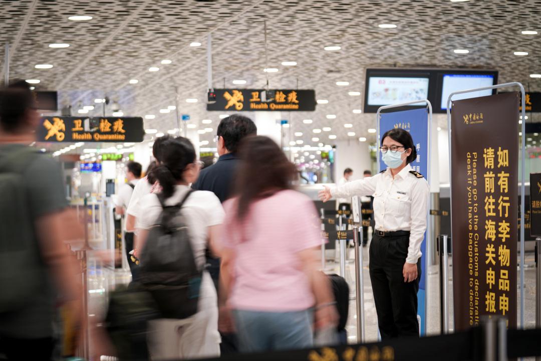 “我国免签政策进一步放宽,叠加暑期出境游的火爆效应,近期机场口岸进出境旅客数量迎来了新一轮的高峰。为进一步加快旅客通关效率,深圳宝安机场海关针对热门航线、重点航班增派人力,不断优化通道设置,保障通关高峰期间现场顺畅,为旅客提供舒适快捷的通关体验。”深圳宝安机场海关旅检四科科长庄游栈介绍道。