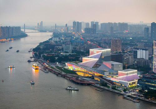 夜幕下,广州白鹅潭大湾区艺术中心华灯初上(2024年4月26日摄)。图/新华社记者 刘大伟