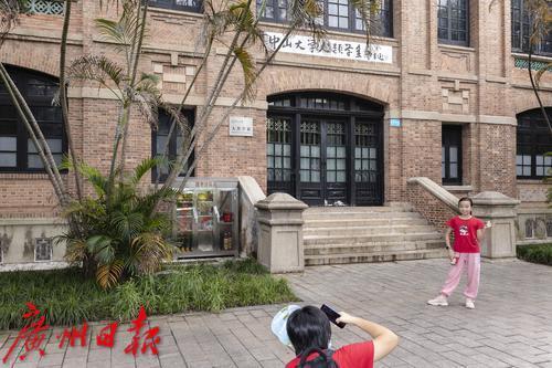家长带孩子打卡老建筑。位于康乐园中轴线东侧的马丁堂于1906年落成,是康乐园内第一栋永久性建筑,亦是中国较早的钢筋混凝土建筑,奠定了康乐园建筑的风格基调,现堂匾“中山大学人类学系”。 为费孝通先生所题。